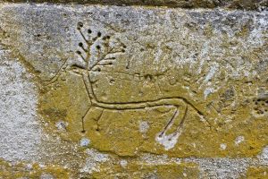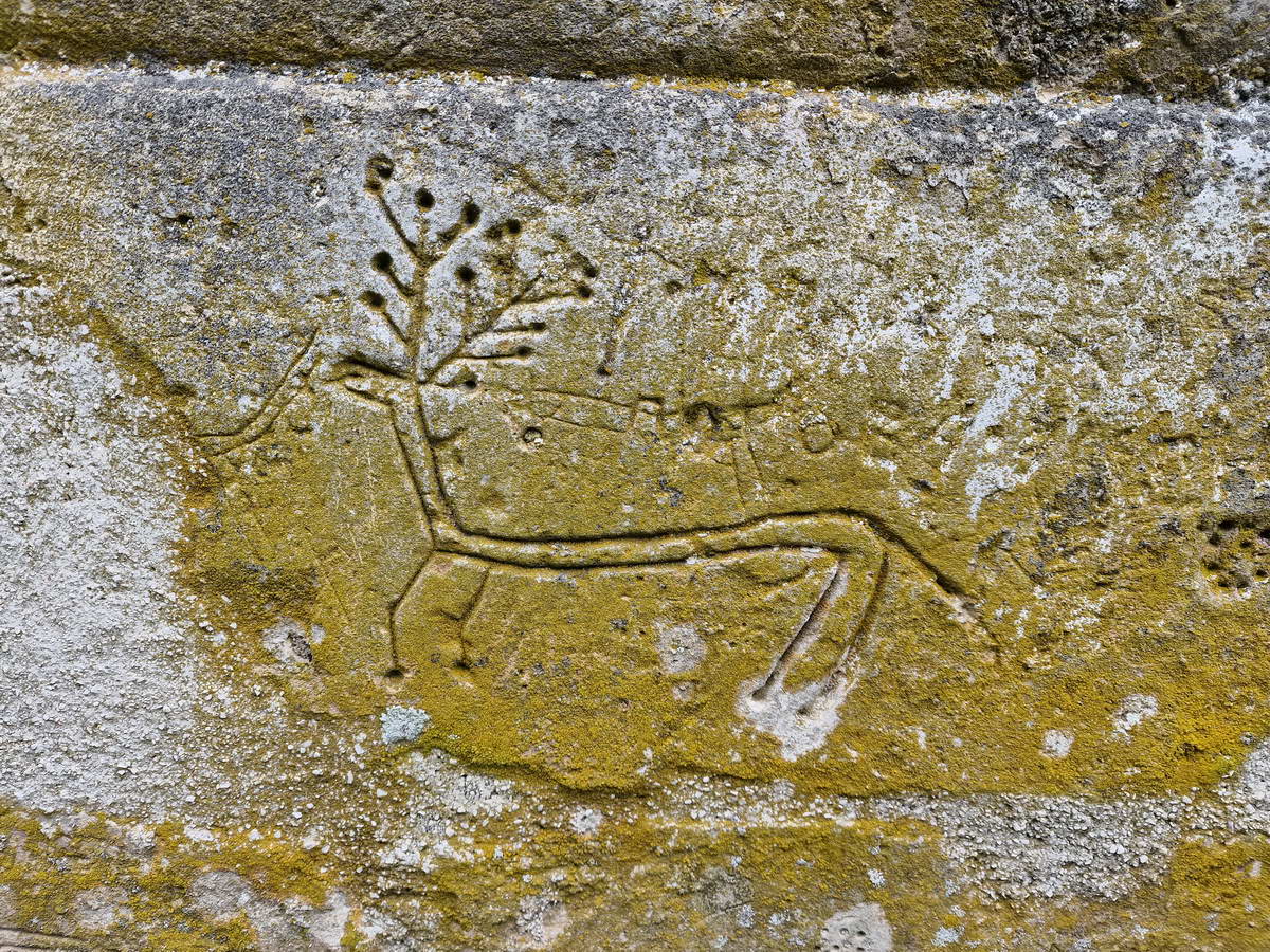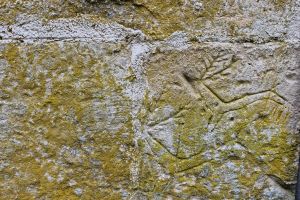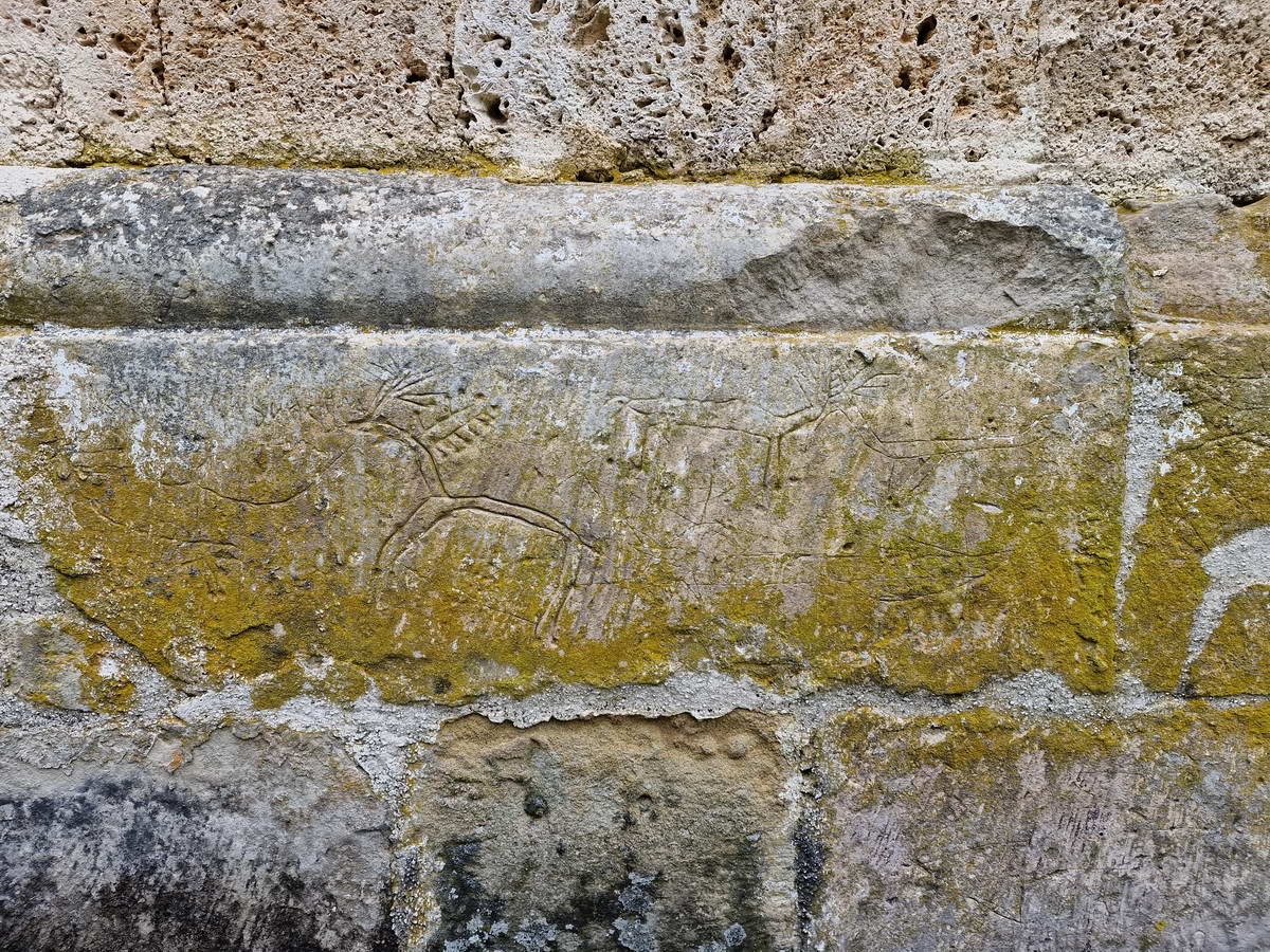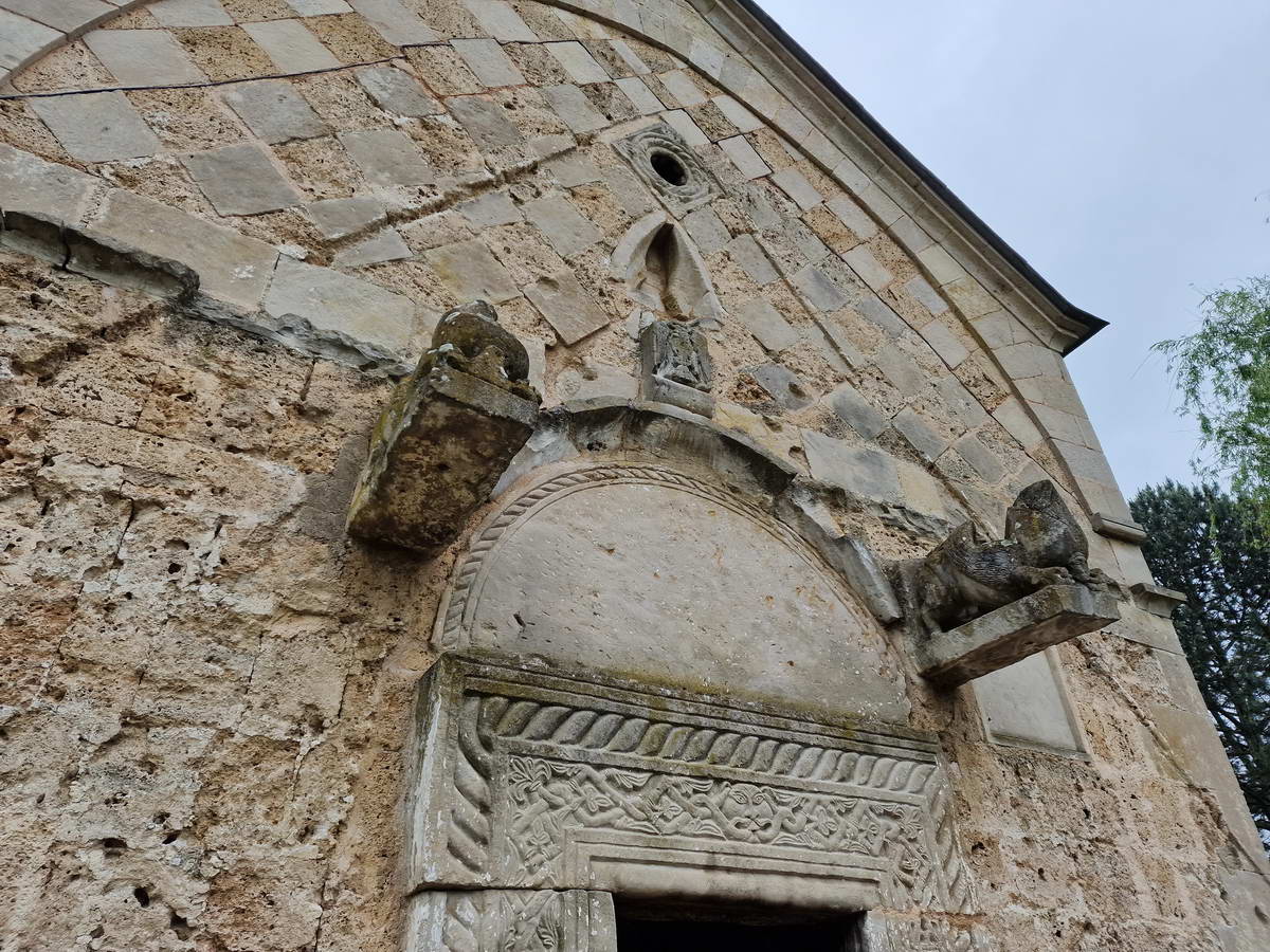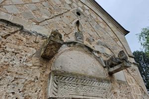 Prelepe skulpture grifona koje se nalaze iznad ulaza mogu se videti još i u Studenici, Banji i Dečanima. Celom dužinom sokle crkve se nalaze brojni uklesani crteži i slova. U pitanju je primitivna umetnost gde se sa nekoliko poteza daju konture životinja ili ljudi. Detaljna istraživanja porekla i značenja ovih crteža nisu još sprovedena, ali se može potvrditi da je u pitanju zaostavština iz raznih vremenskih perioda.